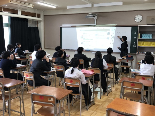 英語科教室の授業 公開日 2026/04/14 更新日 2026/04/14 できごと 長らく文化財課に間貸ししていた教室が生徒増で一部返却されました。それにより、英語と数学の学習室を返していただいた教室に充てることにしました。生徒たちは新しい教室での授業に高揚感をもって臨んでいます。