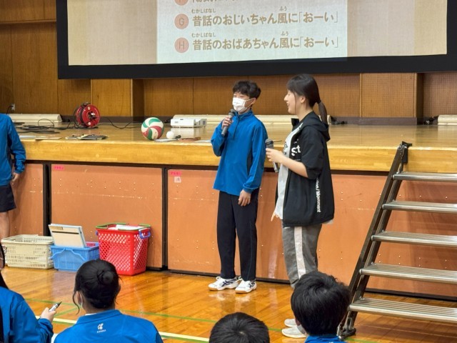 新年度が始まって2週間がたちました。今週は、ここ1・2週間の様子をシリーズで紹介します。新年度が始まった2週間前、各学年では人間関係を構築する目的の「レク」を行っていました。3年生のコミュニケーションゲームの様子です。「〇〇の時にいうセリフ」というお題で代表者が表現し、それがどんな「〇〇の時」かを当てるゲームでした。答えは選択式なのでグループで推理して1つに絞っていきました。