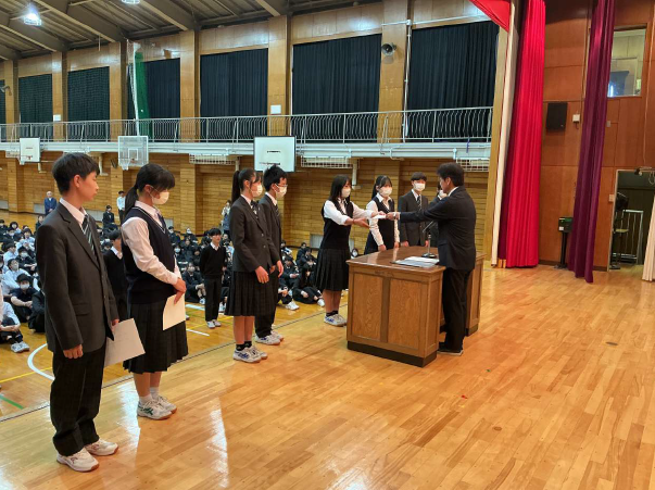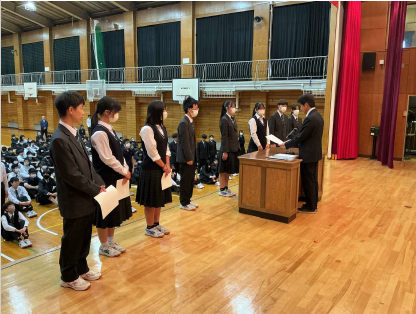 4月20日(月)に前期の認証式が行われました。代表者(学年委員長・専門委員長)に認証状を渡しました。活気ある学校を作るには、各種委員会が生き生きと学校全体のことを考えて実行に移していくことであると考えます。活発な委員会活動を期待しています。