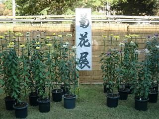 10月29日(土)に晴天の下、けやき祭が行われました。写真は校長の他ボランティア部と「みどりの応援団」の皆さんが丹精込めた作品です。