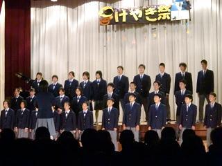 1年生に続いて、2年生が歌いました。さすが上級生、声量・ハーモニーともに1年生を上回りました。2年生の課題曲は「心の瞳」、自由曲はA組「時の旅人」、B組「自分らしく」です。審査の結果、金賞は僅差でB組が獲りました。来年が楽しみです。