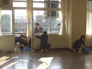 今学期も残りわずかとなった、12月21日の午後に大掃除が行われました。いつもお世話になっている教室やろうか、階段や特別教室などきれいにしました。冷たい水に手を凍えさせていました。本当に熱心にやっていました。これで心置きなく新年を迎えられます。この調子で家の大掃除にも取り組んで欲しいと思います。
