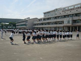 5月14日の5、6校時に3回目の全校練習があり、「大縄跳び」や「ソーラン節」の練習を行いました。大縄跳びは対抗意識むき出しで、どのクラスも一生懸命に取り組んでいました。どこまで気持ちを一つにできるかにかかっています。この調子で本番目指して練習すれば、どのクラスもきっとすごい記録が出るはずです。しかし、ソーラン節の演技は残念な出来でした。恥ずかしいのか集中していないのか、見ている方が恥ずかしくなるレベルでした。ソーラン節は清新二中の伝統です。教育実習生の二人も中学生の時に演じた歴史があります。見に来た卒業生に笑われないようにがんばりましょう。