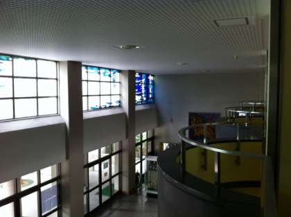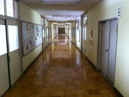 本校では「学校版もったいない運動」の一環として節電に取り組んでいます。写真は授業中の廊下と玄関ホールのようすです。やや薄暗いですが、必要のない場所の電気は消すようにしています。保護者会やPTA活動などで来校された時に驚かれるかもしれませんが、ご協力お願いいたします。また、現在夜間開放の施設利用を停止していますが、子どもたちも節電に取り組んでいますので、ご理解いただきたいと思います。施設利用の再開に関しては、区のホームページをご覧いただきたいと思います。