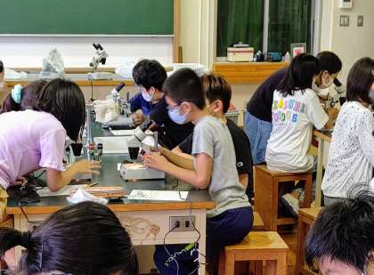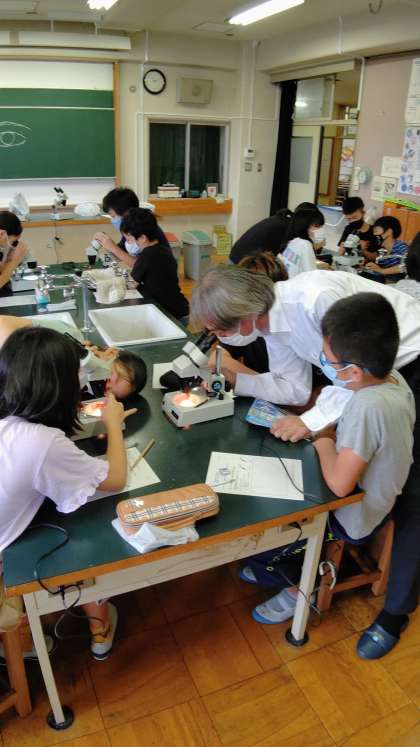 こちらは理科の授業の体験です。理科の観察・実験が好きな児童が多く、とても意欲的に取り組んでくれました。
