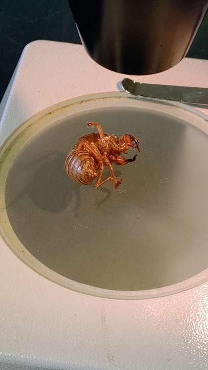 写真3 顕微鏡で観察したのはセミの抜殻です。顕微鏡で覗くと、まるで怪獣のようにも見えます。