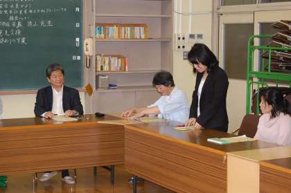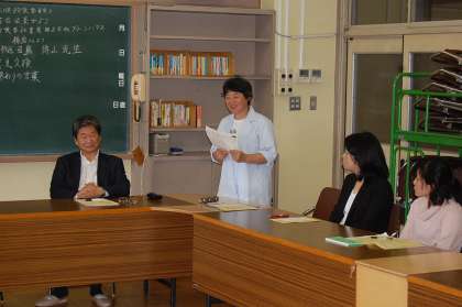 9月25日、給食試食会に引き続き学校保健給食委員会が開かれました。給食委託業者の(株)グリーンハウスさんから給食調理についてお話いただいたあと、学校医の田島先生に子供たちの食生活と体の健康(病気疾患含)についてお話いただきました。