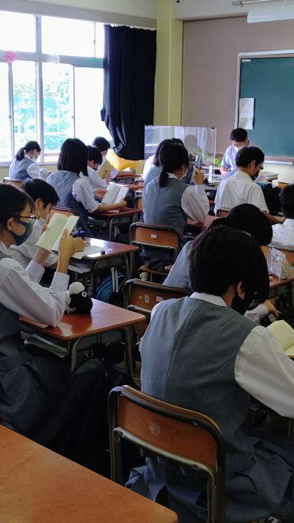 大勢の生徒がいるにもかかわらず、本の頁をめくるかすかな音だけが、教室に静かに響きます。