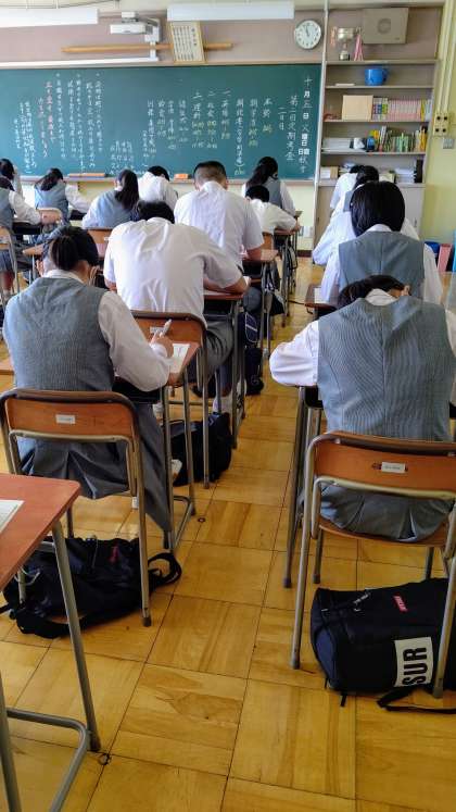 写真1 3年生 今回の定期考査は進路にもかかわる大切なテスト。真剣に受けていました。