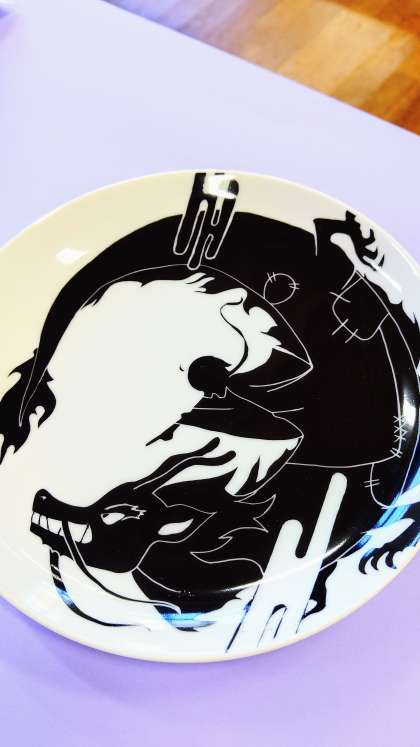 写真 3年生「美術」 絵皿 (黒い釉薬を削っての作品づくり) 1
