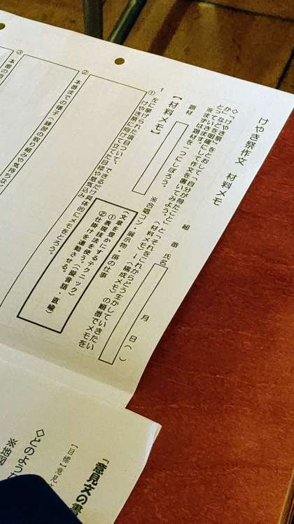 写真2 1年生「国語」作文 ーけやき祭を振り返ってー
