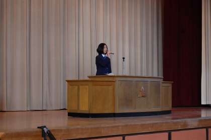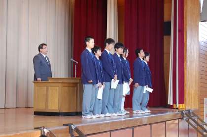 10月15日(月)、朝の生徒会朝礼で後期生徒会役員(来年の9月迄)と専門委員の認証式が開かれました。代表して新生徒会長の青木さんから挨拶がありました。3年生から引き継ぎ決意を新たにしている新役員や委員の皆さんを応援していきましょう。