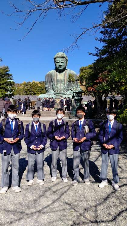 鎌倉と言えば、何といっても大仏様です。多くの生徒から「大きい〜」との声が聞こえてきました。