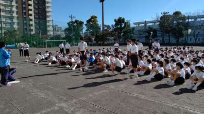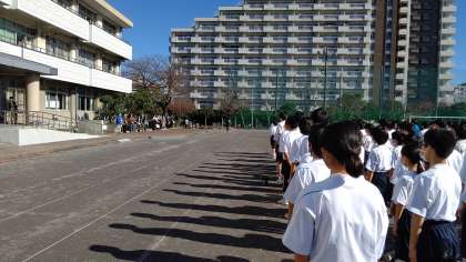 閉会式は校庭で行われ、各学年の男女別にベスト8が発表され、全校を通じての男女別のベスト10も発表されました。表彰式、賞状の授与は、後日の全校集会等で行います。
