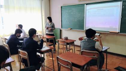 写真1 2年生「数学」図形の証明 二等辺三角形について