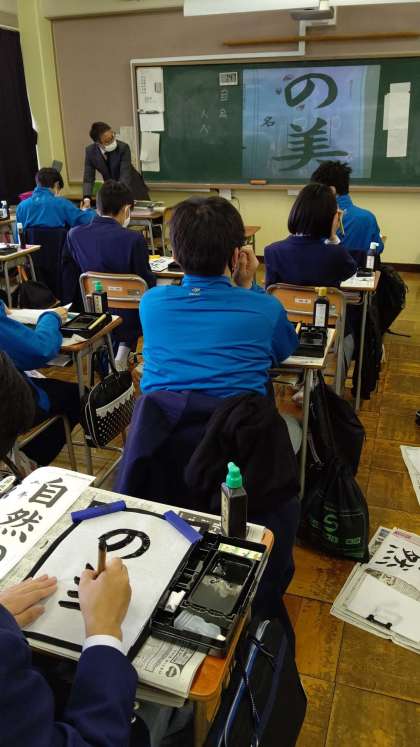 写真2 2年生「国語・書写」 冬休みに向けて、書き初めの練習が始まりました。