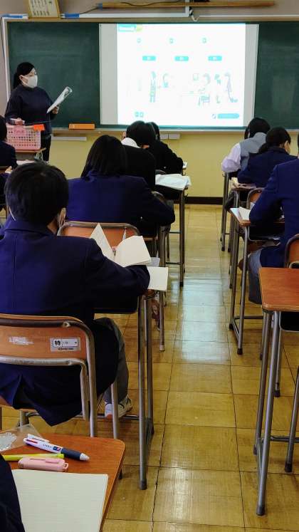 写真1 1年生「英語」現在進行形 〜ing の使い方 聴く・話す も大切です。