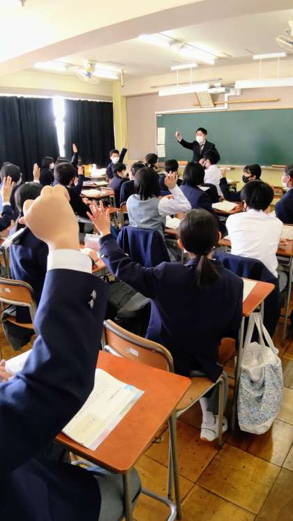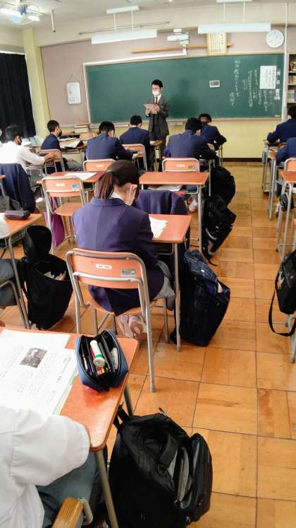 写真2 2年生「道徳」題材:復旧にとどまらず、復興を〜後藤新平〜【道徳的価値:社会貢献・公共の精神】 大正12年9月1日に関東大震災が発生し、首都東京は壊滅的な打撃を受ける。内務大臣兼帝都復興院総裁の後藤新平は、東京の復興・復旧に全力を傾ける。社会を善くするとはどういうことなのか・・を考える。