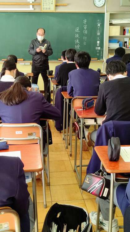 写真3 3年生「道徳」題材:宇宙飛行士 選抜試験【道徳的価値:希望と勇気・強い意思】 2008年、JAXA宇宙航空開発機構では約10年ぶりになる宇宙飛行士の募集が行われた。930名以上の応募者から最終選考に残った10名のファイナリストに密着したドキュメント。夢を叶えるとは・・希望を果たすとは・・強い意思をもつことの大切さを考える。