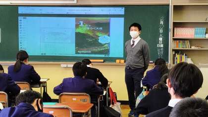 写真1 授業の内容は「大地の変化 〜火山〜」です。