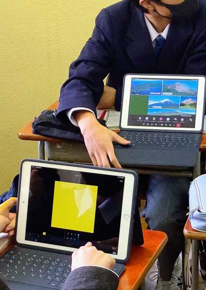 iPad端末を活用することで、鮮明な写真を生徒のすぐ手元に送ることができ、また生徒からの意見・考えもすぐに集約することができました。