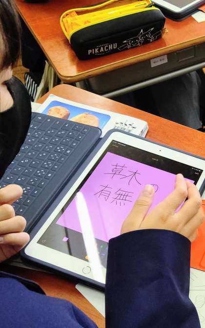 1年C組の生徒の皆さんは大変意欲的に授業に臨んでくれました。iPadタブレットもしっかりと使いこなしています。