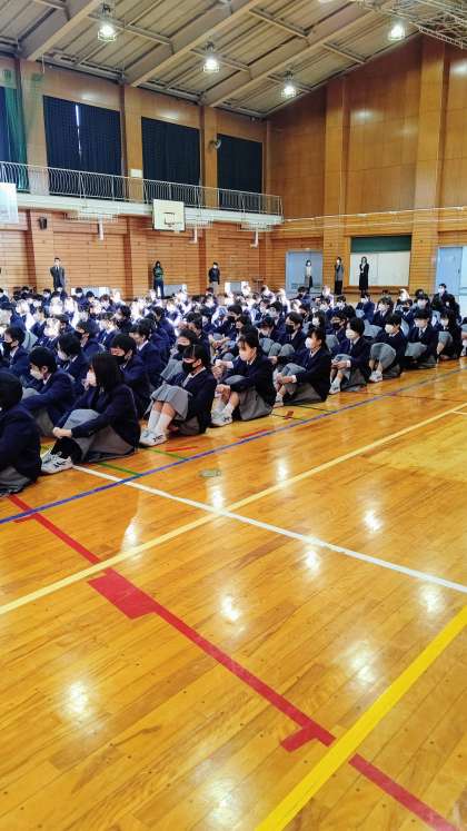 写真2 しっかりと整列して話を聴いてくれています。