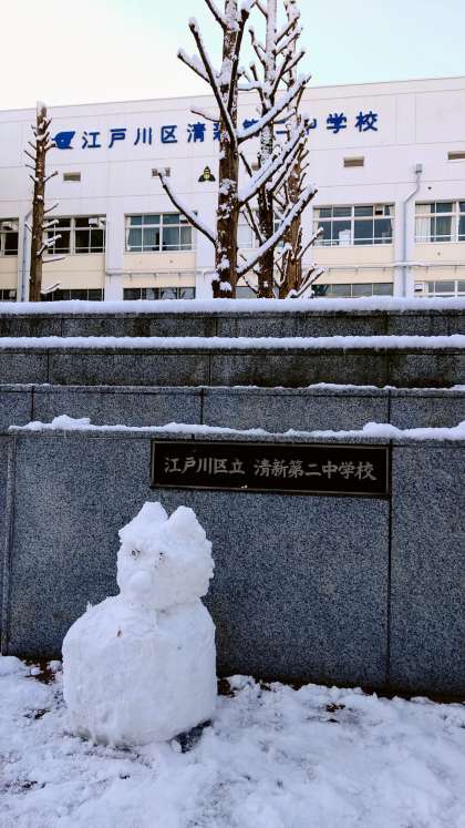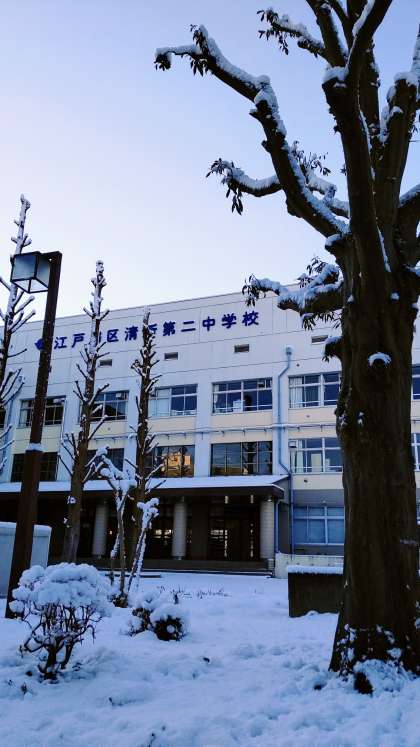 写真1 昨日、東京に降雪がありました。清新二中も雪化粧です。