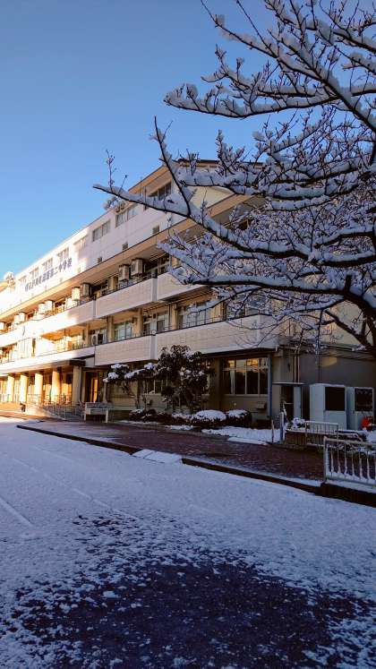雪は昨日の夜8時頃には止みましたが、今朝、校庭一面は雪で覆われていました。純白の雪で覆われていてとても綺麗でした。