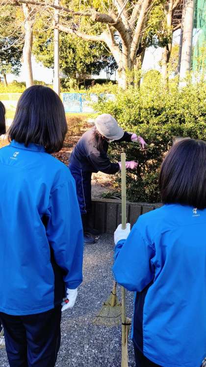 樹木の剪定作業をしてもらいました。本校の校庭は区内中学校の中でもかなり大きいので、その樹木の剪定作業はとても大変です。とても骨のおれる作業です。