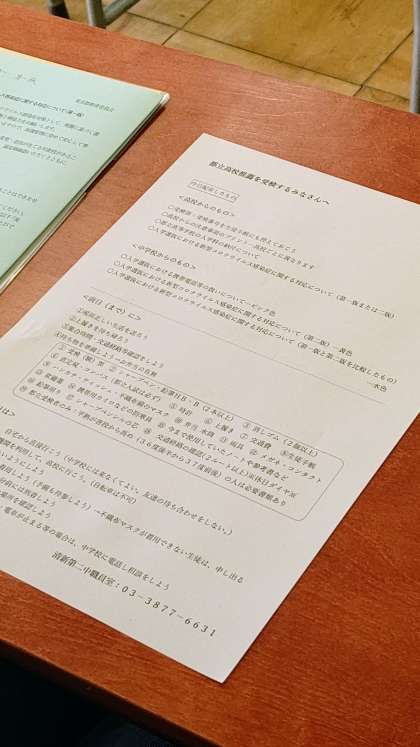本日1校時、クラス別に都立高校推薦入試受検者を集め、受検日の持ち物、受検上の注意・心得、健康観察等について話をしました。