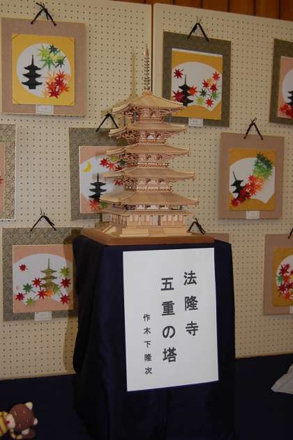(3)職員作品(法隆寺五重の塔、折り紙)