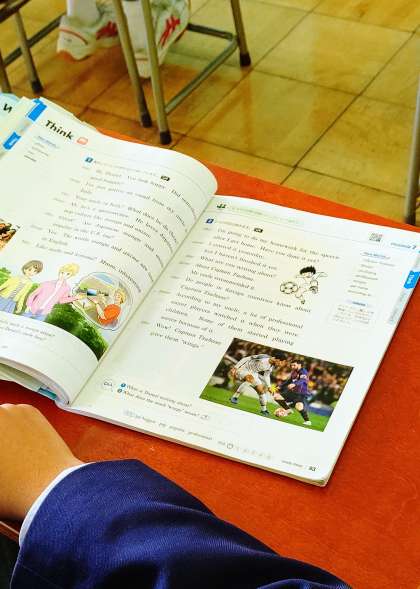 写真2 2年生「英語」 外国人プロサッカー選手の多くも、子供の頃、アニメ「キャプテン翼」を観ていたことが紹介されています。