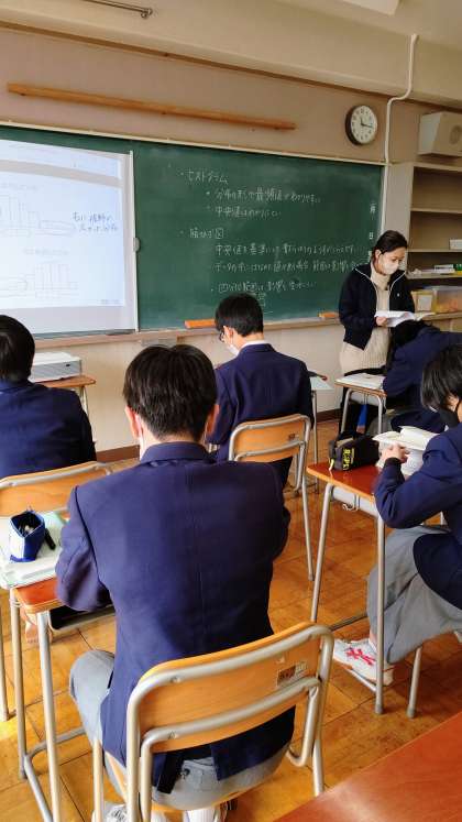 写真2 2年生「数学」少人数指導 データ分析 ヒストグラフ・箱ひげ図