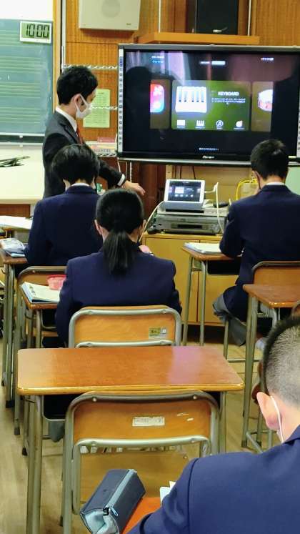 写真2 2年生「音楽」iPadを用いた電子楽器の活用