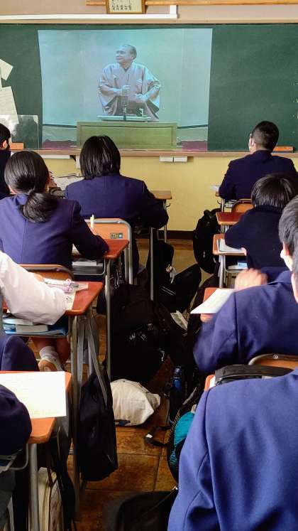 写真2 1年生「道徳」庶民の笑いを絶やさない 桂米朝【道徳的価値: 日本の伝統と文化の継承】