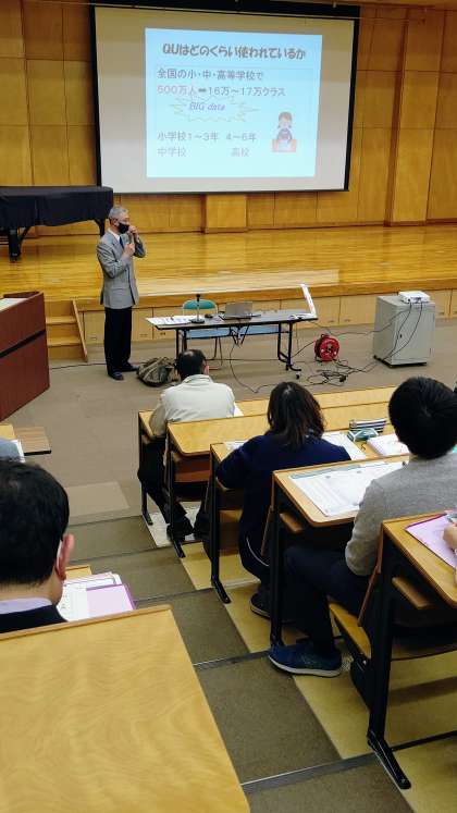 QU調査の結果を適切に利用することで、生徒一人ひとりの生徒理解に役立つとともに、クラスのまとまり状況や人間関係等の状況を把握することができ、よりよいクラスづくりに役立てることができます。講師の伊藤先生には懇切丁寧にご指導いただきました。有難うございました。