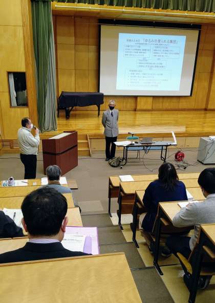 先生方の勉強会を研修会といいます。今回「ハイパーQUを活用した生徒理解」についての校内研修会を開催しました。講師の先生には荒川区教育委員会より伊藤康嗣 先生にお越しいただき、QU調査結果の分析方法、結果の活用方法等についてご教授いただきました。