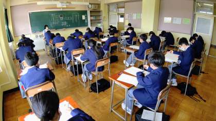 写真1 3年生の教室です。1クラス40名いるので教室目一杯です。