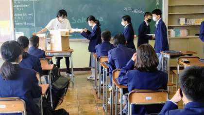 本日は午前中一番に、全生徒の生徒手帳用の写真撮影が行われました。