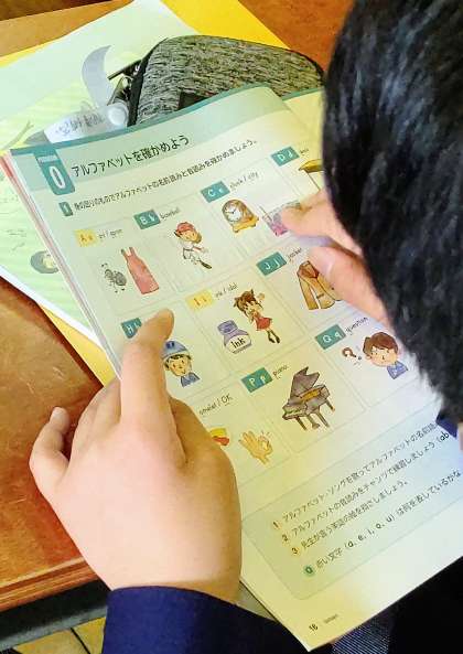 写真2 1年生「英語」 アルファベットの確認 英語の基礎から学習しています。やさしい内からしっかりと。