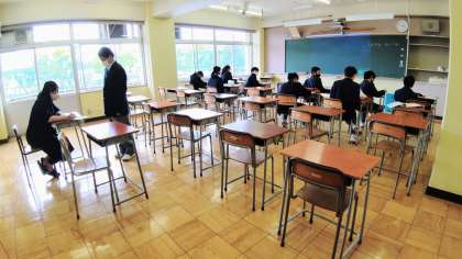 写真3 英語は少人数で学習しています。2学級を3グループに分けて、3つの教室を使っています。