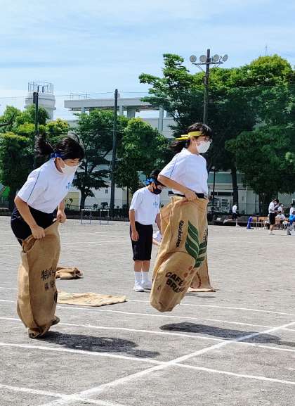 「障がい物走」 多くの障がいを乗り越えて走ります。 ( 校長 白石 亨 )
