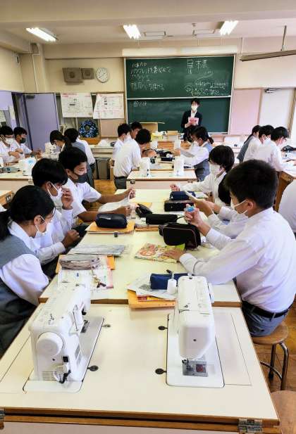 写真3 3年生「家庭」 裁縫: 壁掛けポケット かわいらしい作品に仕上げます。