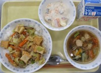 ごはん 厚焼きたまご 肉豆腐 さつまいものレモン煮 さくらんぼ 牛乳