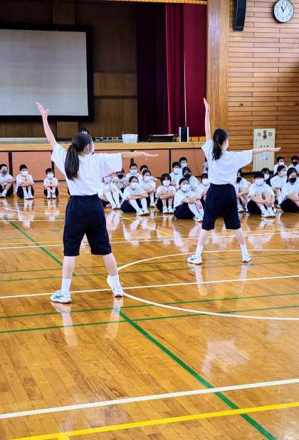 写真1 1年生「体育」 運動会で披露したソーラン節の実技テストです。