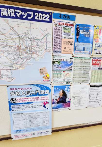写真2 高等学校等、進路にかかわる掲示物が増えてきました。
