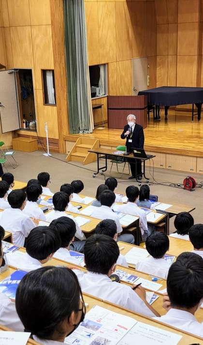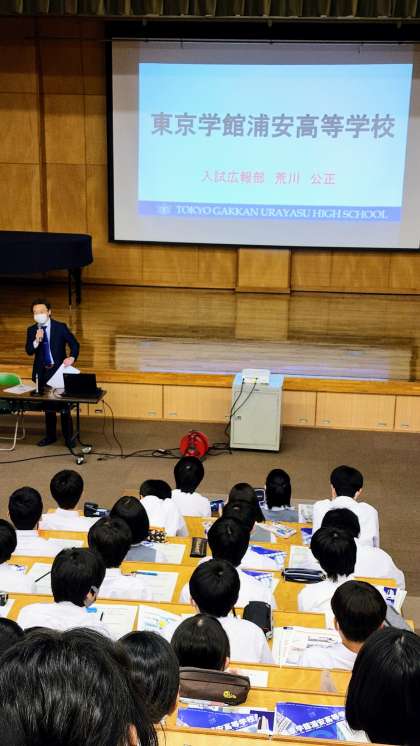 昨日、第1回定期考査が終わったばかりですが、本日5・6校時に高等学校の先生方をお招きして「高等学校の特色・入試への心掛け」等の話をしていただきました。3年生及び保護者の方々に参加していただきました。