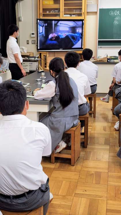 写真1 3年生「理科」 ビデオ教材(動画教材)で、身近な科学的現象について考えます。科学的な思考力を伸ばします。