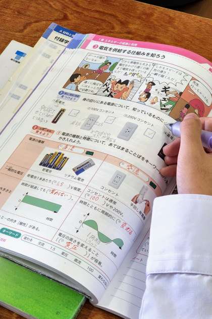 写真3 3年生「技術」電気が供給される仕組みを学びます。この暑さで電気の供給がひっ迫している今だからこそ、電気の供給の有り難さが身に沁みます。